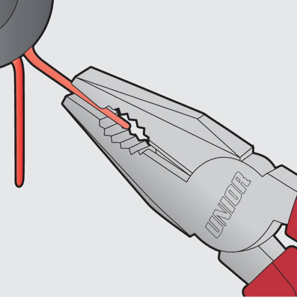 Pinza aislada con punta semirredonda, boca curva con corte y grip