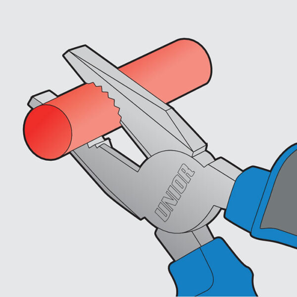 Pinzas de punta larga curvada con cortador lateral y mordaza para tubo (BI)